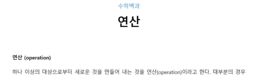 연산(operation)의 뜻도 검색해보면 '하나 이상의 대상으로부터 새로운 것을 만들어 내는 것'이라고 합니다.