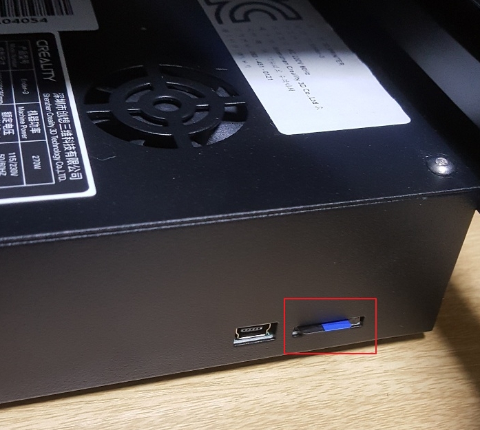 SD카드에 파일을 넣고 프린터에 삽입합니다.