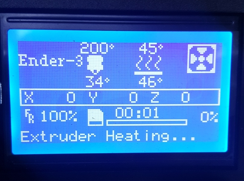그러면 배드와 노즐의 온도가 설정되고 서서히 온도가 올라갑니다.