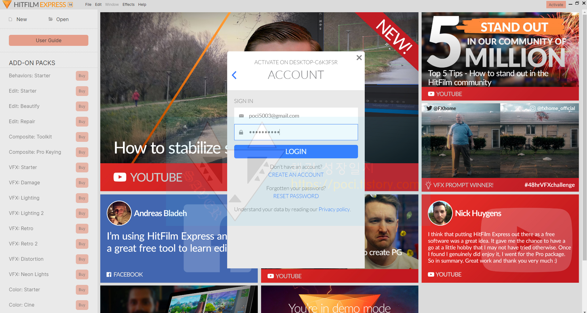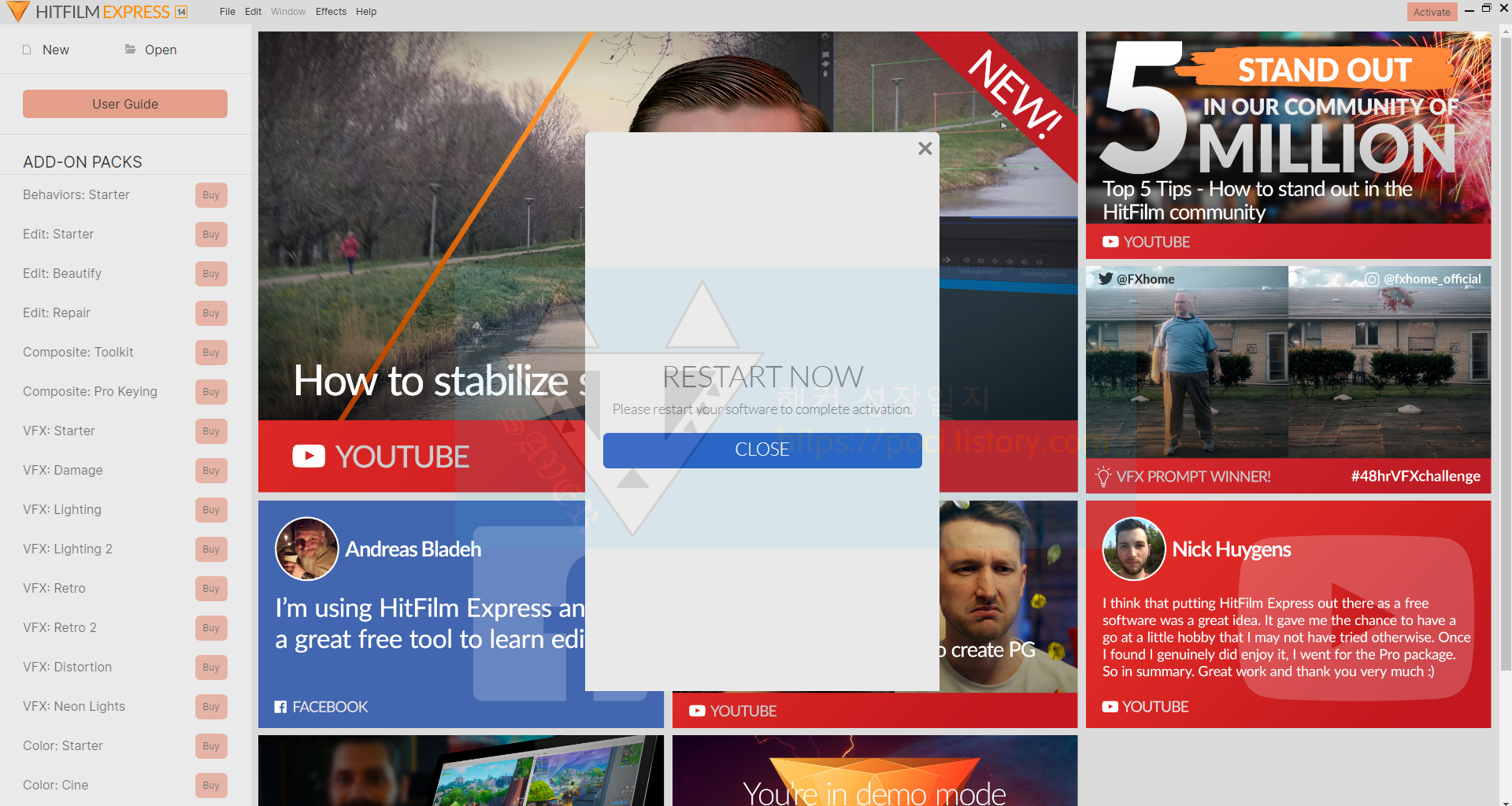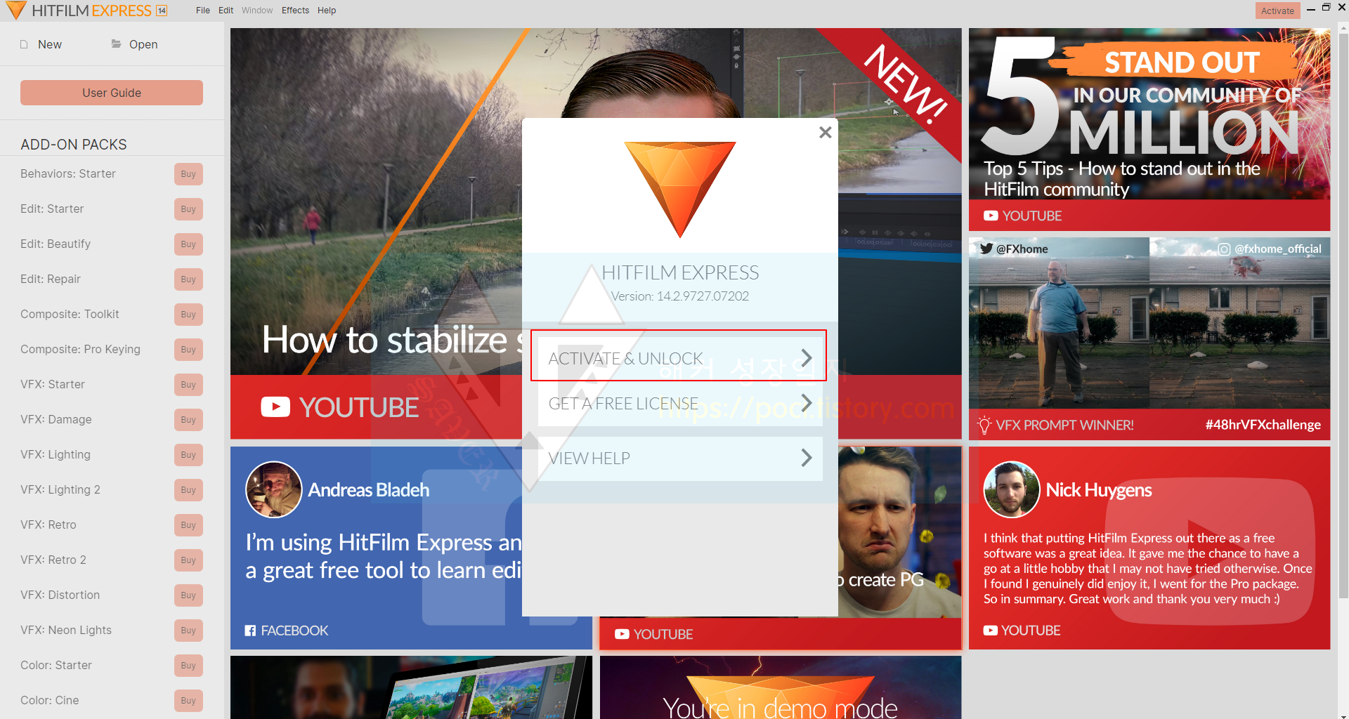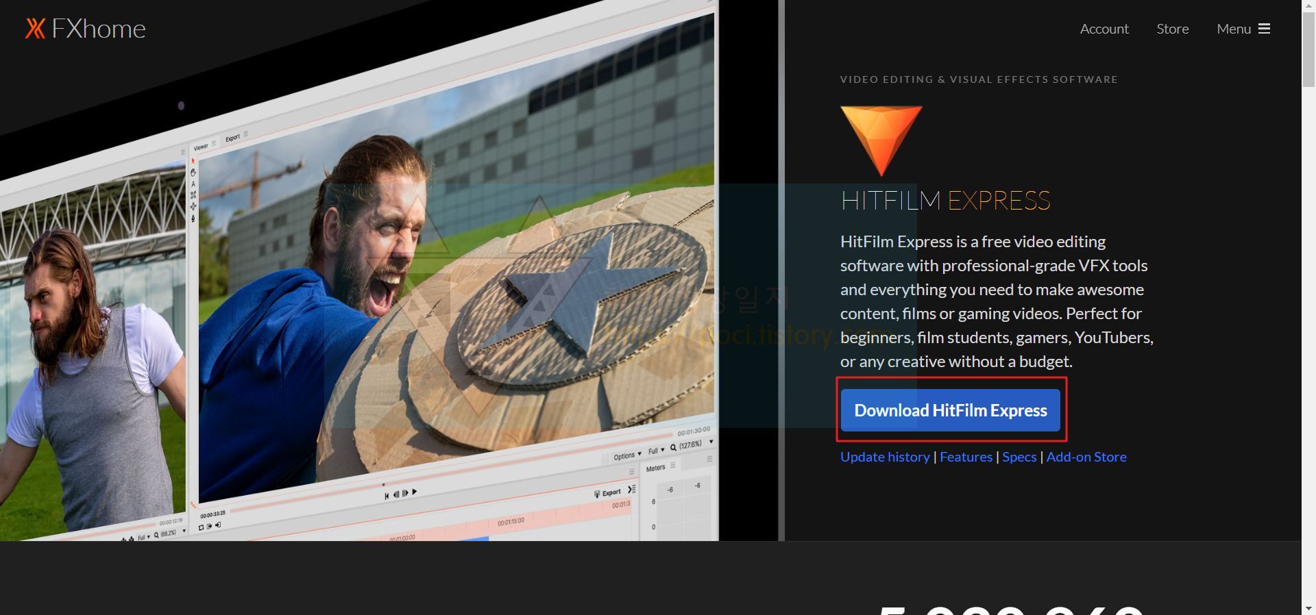 히트필름 공식 홈페이지 : https://fxhome.com/hitfilm-express