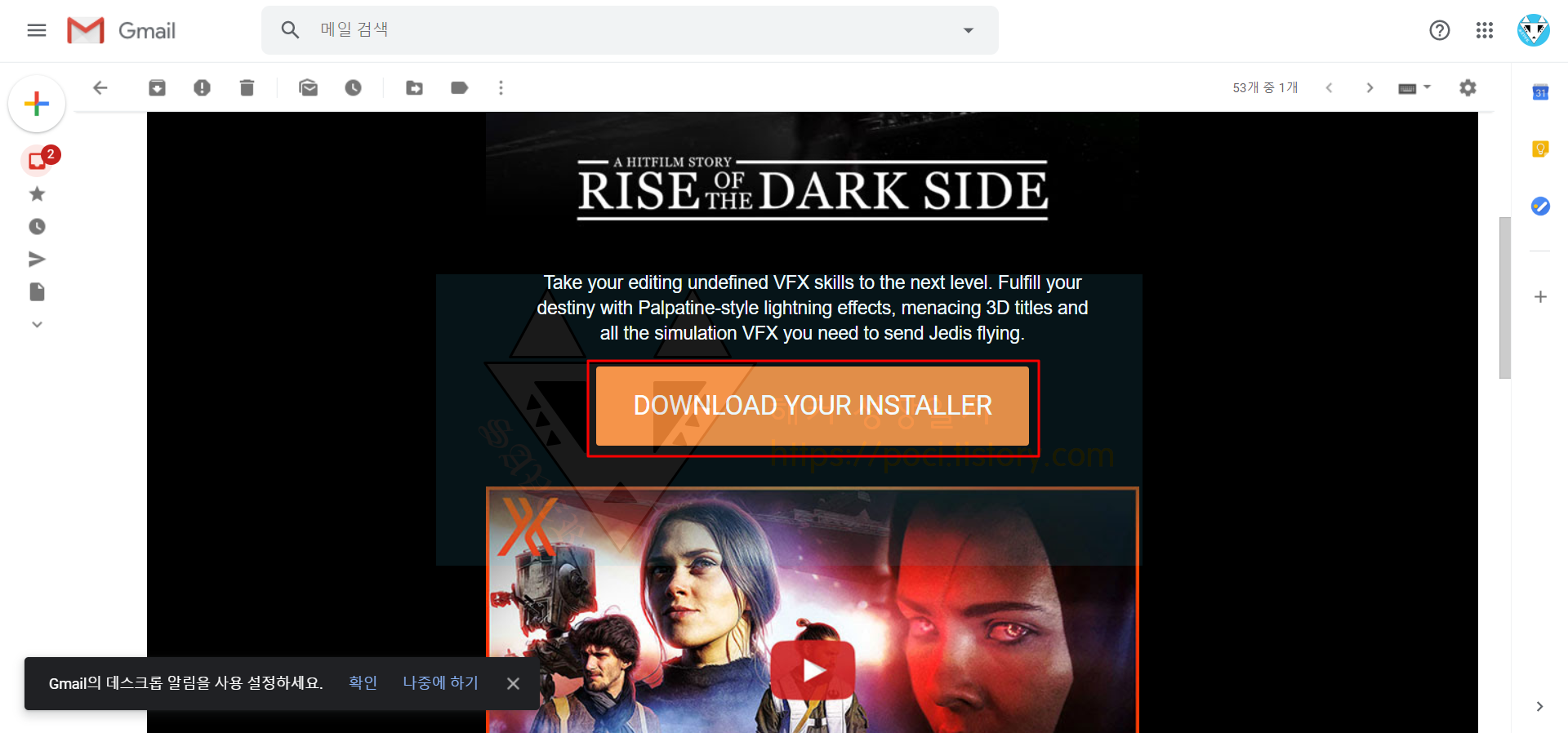 그러면 기입한 이메일로 메일이 하나 옵니다.