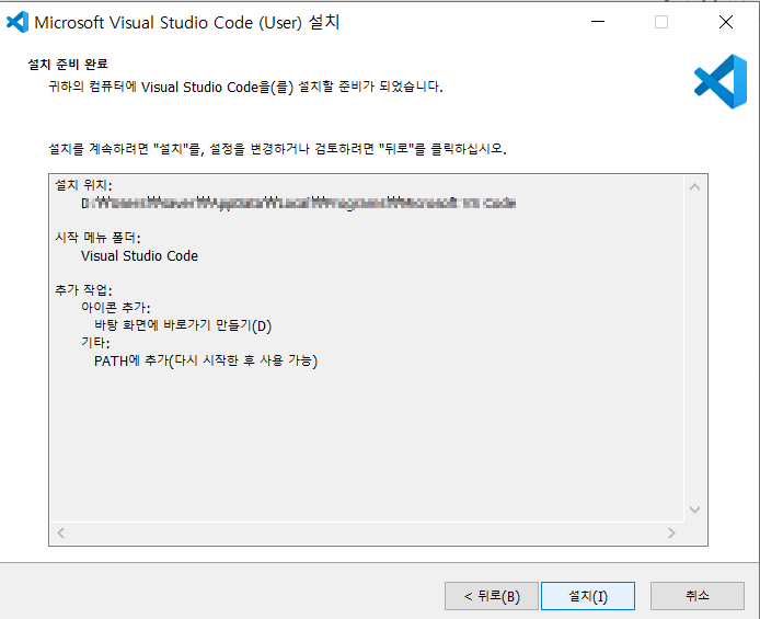 설치를 클릭하면 설치가 시작됩니다.