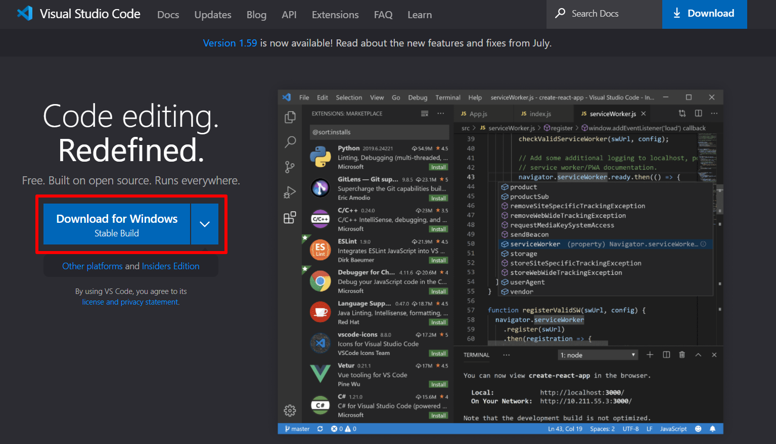 Visual Studio Code - Code Editing. Redefined
