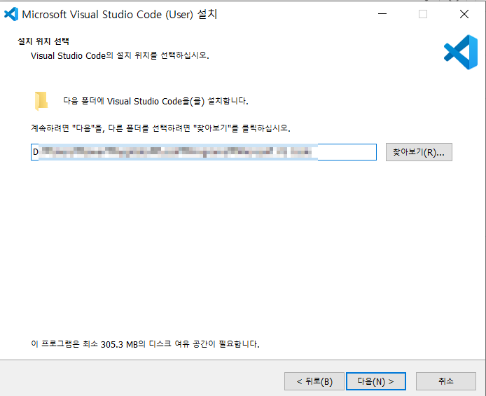 설치할 폴더의 위치를 지정해주고 다음을 클릭합니다.