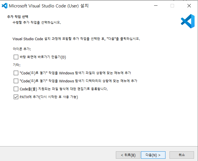 추가 작업을 선택해주고 다음을 클릭합니다.