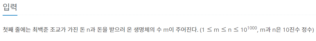 입력값의 범위가 10의 1000제곱까지 될 수 있다는 것입니다.
