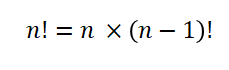 펙토리얼은 특정한 수보다 적은 수들을 모두 곱하는 수학식입니다.