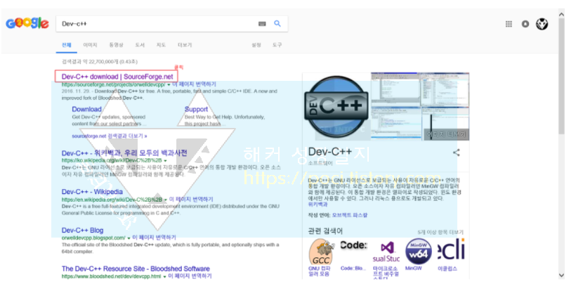 구글에 Dev-C++를 검색하고 맨 위에 있는 걸 클릭합니다.
